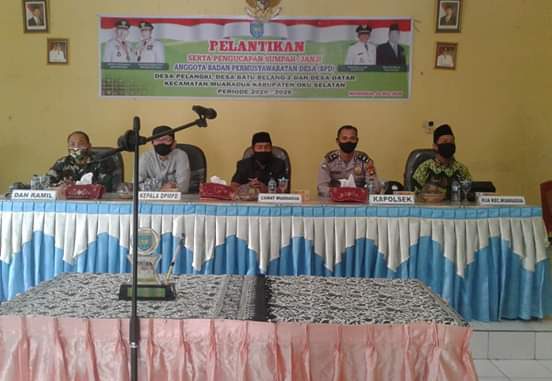 Camat Muaradua Putra Bani S,Sos MM Melantik sembilan belas Angota Badan Permusyawaratan Desa (BPD) dari tiga Desa yaitu Desa Pelangi 9 orang,Desa Datar 5 orang,Desa Batu Belang dua 5 orang,Kecamatan Muaradua Kabupaten Oku Selatan Sumatera Selatan Resmi di Lantik yang dihadiri oleh unsur Muspika,Danramil,Kapolsek,Kua,dan Kepala BMPD Berseta Undangan lurah dan Kepala Desa Sekecamatan Muaradua, Kecamatan Muaradua Melantik dan menggambil sumpah Anggota BPD masing-masing Desa Tersebut dilaksanakan di Aula Kantor Camat Muaradua pada tanggal (10/07) berlangsung khidmat dan lancar,Menurut Bapak Putra Bani S,Sos MM Anggota BPD tersebut setara dengan Kades dan perangkatnya karena sama-sama dilantik oleh Bupati yang Membedakan kedua insitusi ini adalah tugas pokok dan fungsi (tupoksi) masing-masing yang telah diatur dalam peraturan perundang-undang ,seluruh BPD yang telah dilantik agar dapat berkerja profesionoal,dan harus memeahami tugas dan wewenang nya.