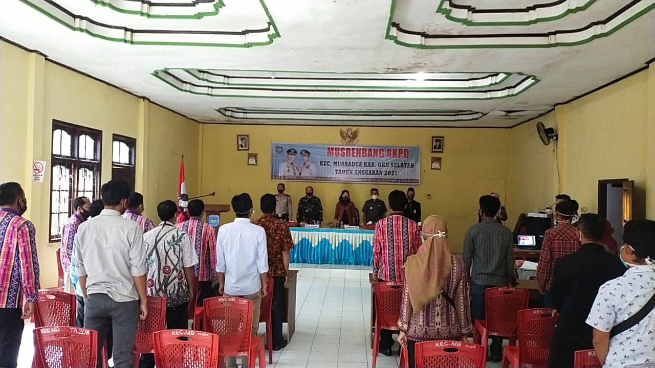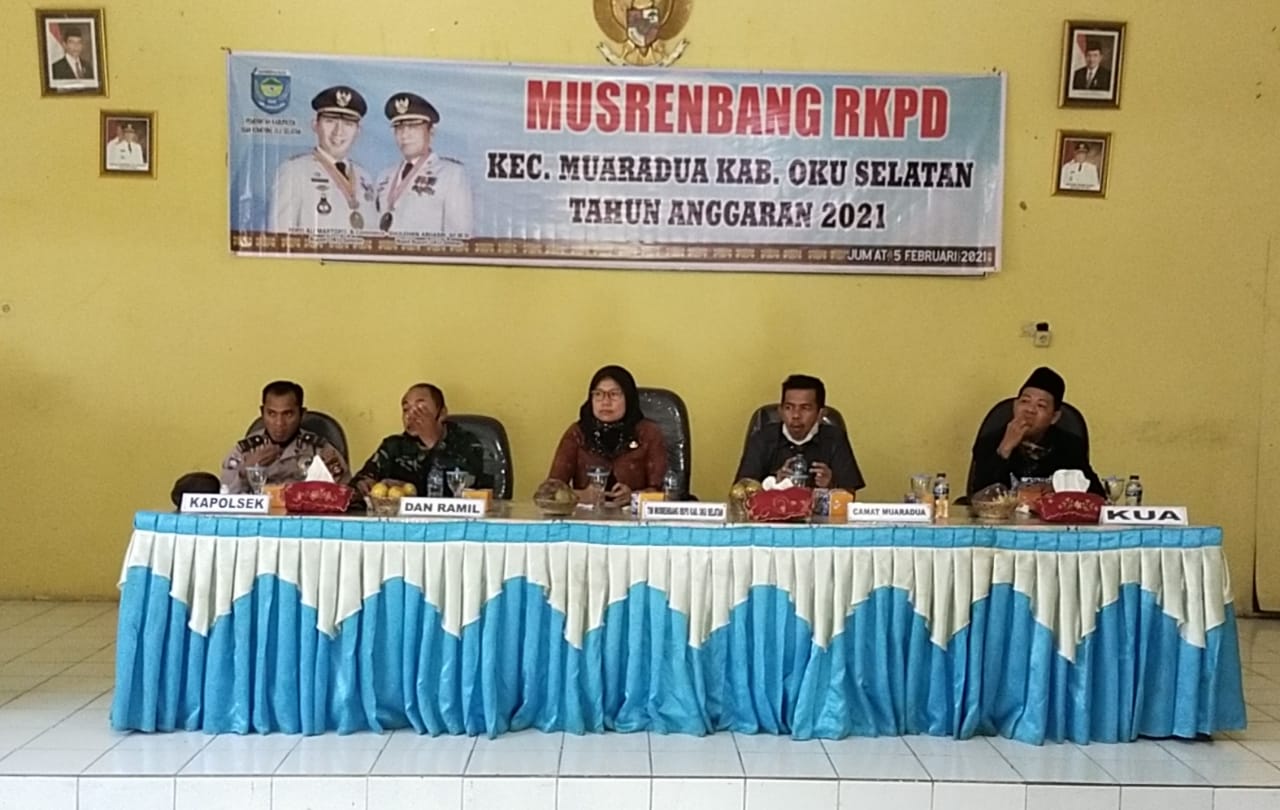 Musyawarah Perencanaan Pembangunan (Musrenbang) Tingkat Kecamatan Tahun 2021 di Gelar di Aula Kecamatan Muaradua (5 Februari 2022) Oleh Tim Pasilitas Musrenbang dan Narasumber Pemangku Kepentingan di Kecamatan Muaradua Tahun Anggaran 2021 Yang di Hadiri Oleh:Kapolsek,Danramil,KUA,lurah,Kepala Desa dan Mengikutsertakan Kaur Perencanaan Desa Dalam Wilayah Kecamatan Muaradua. Pembukaan Oleh Pelaksana musrenbang di Lnjutkan Dengan Arahan dan Camat Muaradua,Muaradua Kabupaten Oku Selatan