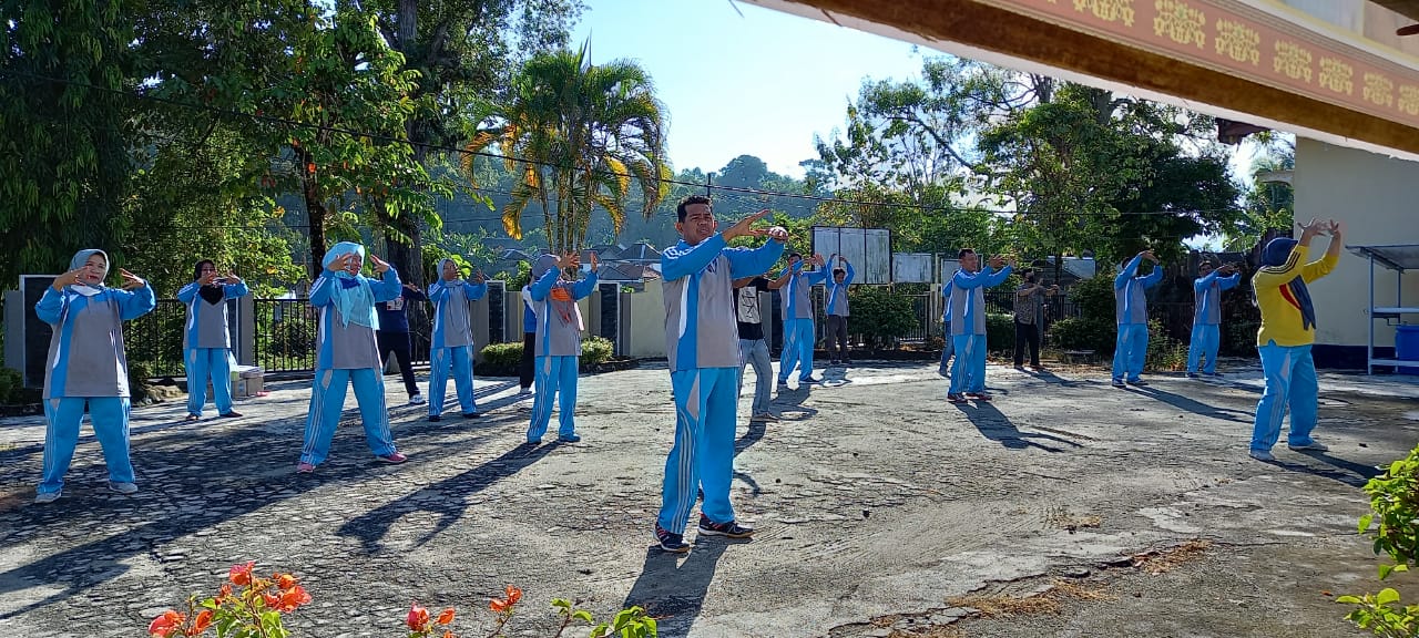 Camat Muaradua Mengikuti Senam Bersama Pegawai Di Halaman Kantor Camat Muaradua,Pegawai PNS maupun Honorer Kantor Camat Muaradua Kemarin Jum’at pagi (18/06/2021)