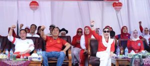 Bupati Oku Selatan Popo Ali Martopo ,B.Coom ., Wakil Bupati Oku Selatan H. Sholehien Abuasir ,S.P.M.Si.Ketua DPRD OKU Selatan ,Heri Martadinata ,S,E,Wakil Ketua DPRD Carles Minarko ,S,E,Ketua dan Wakil Ketua TP – PKK Kabupaten OKU Selatan dan Sekretariat Daerah M. Rahmttullah ,S,STP.MM.serta unsur Forkopmda hadiri secara langsung dan menyaksikan Kreativitas para peserta pawai pembangunan yang menampilkan berbagai penampilan di panggung kehormatan depan Bank BNI Muaradua.