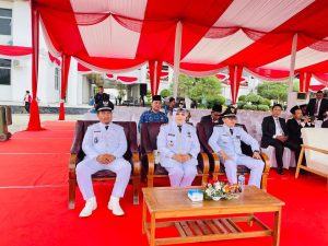 sabtu sore 17 Agustus 2024,bertempat di lapangan pemkab Oku selatan ,wakil Bupati Ogan Komering ulu Selatan (okus)H,sholehien abu Asir,s.p.m.si.bersama Forkompinda oku selatan Hadiri upacara penuruan bendera merah putih dalam rangka Hut kemerdekaan RI Ke-79 tahun 2024.