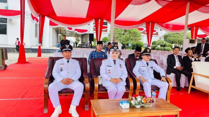 sabtu sore 17 Agustus 2024,bertempat di lapangan pemkab Oku selatan ,wakil Bupati Ogan Komering ulu Selatan (okus)H,sholehien abu Asir,s.p.m.si.bersama Forkompinda oku selatan Hadiri upacara penuruan bendera merah putih dalam rangka Hut kemerdekaan RI Ke-79 tahun 2024.