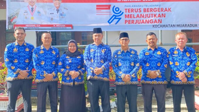 lurah ,Kasi,Kasubbag dan seluruh Staf Kecamatan ,Kelurahan Mengikuti Apel Gabungan di Halaman Kantor Camat Muaradua yang di laksanakan pada Hari Senin 17 November 2025,Pukul 08.00 Wib,dengan Memakai Pakain Korpri Lengkap kerena sesuai ketentuan yang ada terkait pakaian dinas ASN Wajib pakaian Korpri setiap tanggal 17 atau tanggal selanjutnya apa bila 17 hari libur untuk Pembina Apel Pagi ini dipimpin lansung oleh Camat REZA fAHLEVI,S.Pd.MM Camat Muaradua,untuk Petuas Apel Pagi Komandan Apel Pak Tarmizi,SE dan Perwira Lia Puapita,SE